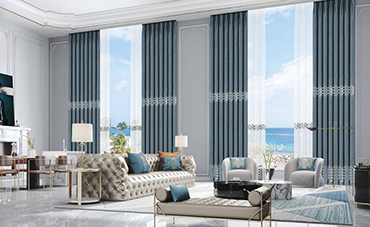 把窗簾放在窗簾架上,利用設備自帶120度高溫蒸汽對織物進行均勻的高溫蒸燙。